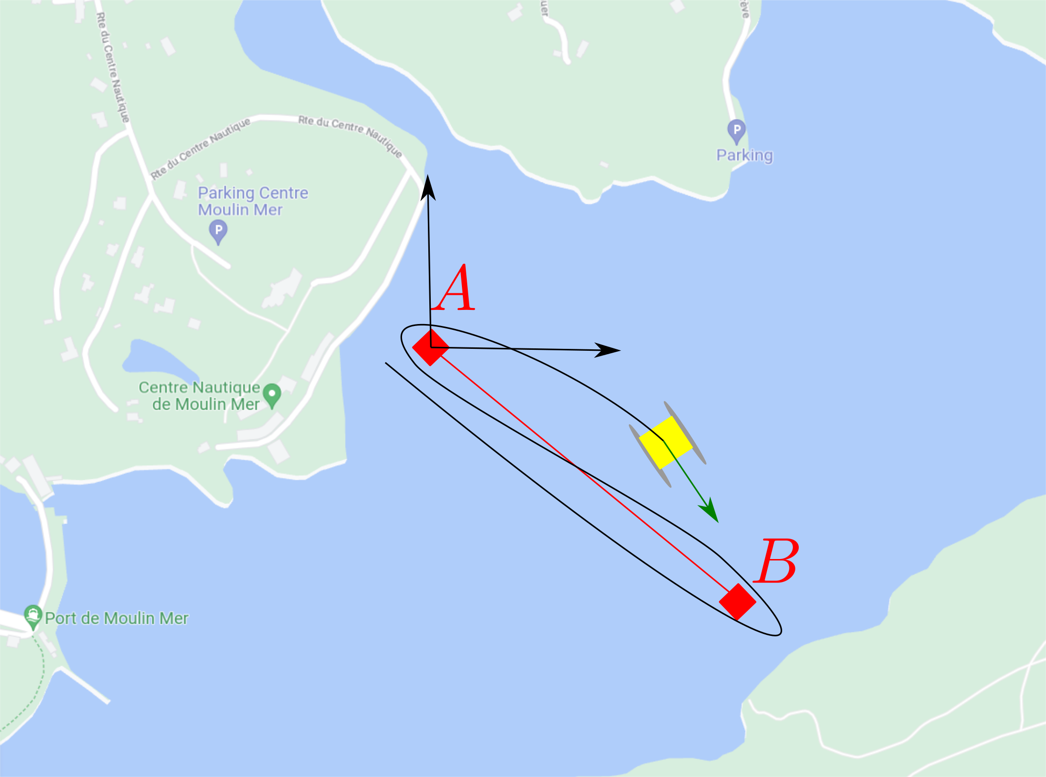 Distance from A to B : 350 m.
