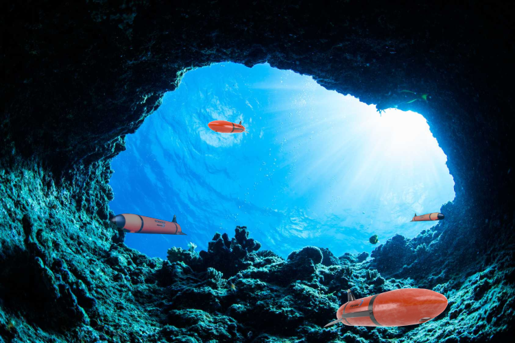 Robots have to explore an underwater karst.