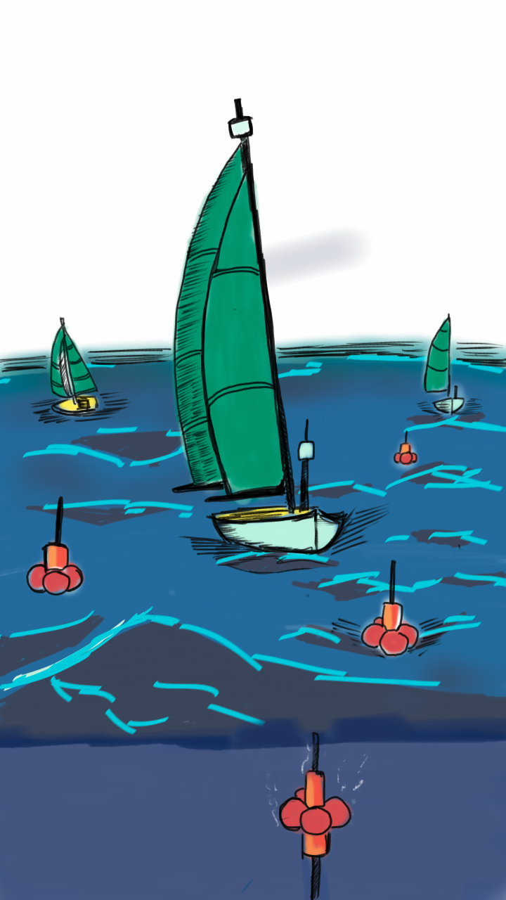 aisé. On peut désormais voir les voiliers s'asservir sur leur triangles et les bouées dériver.
